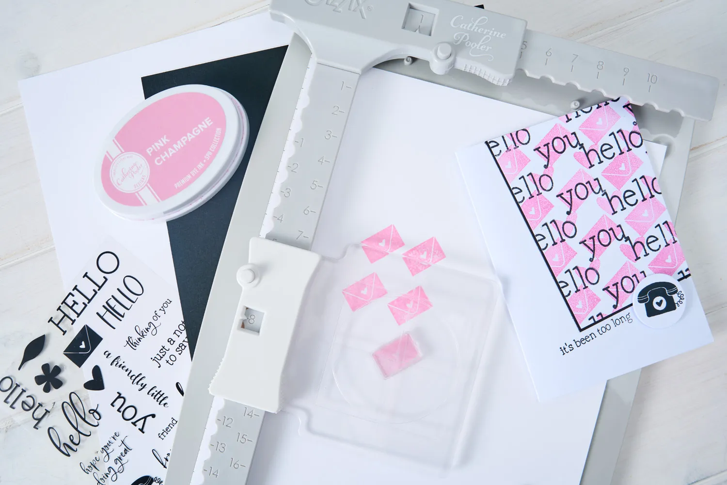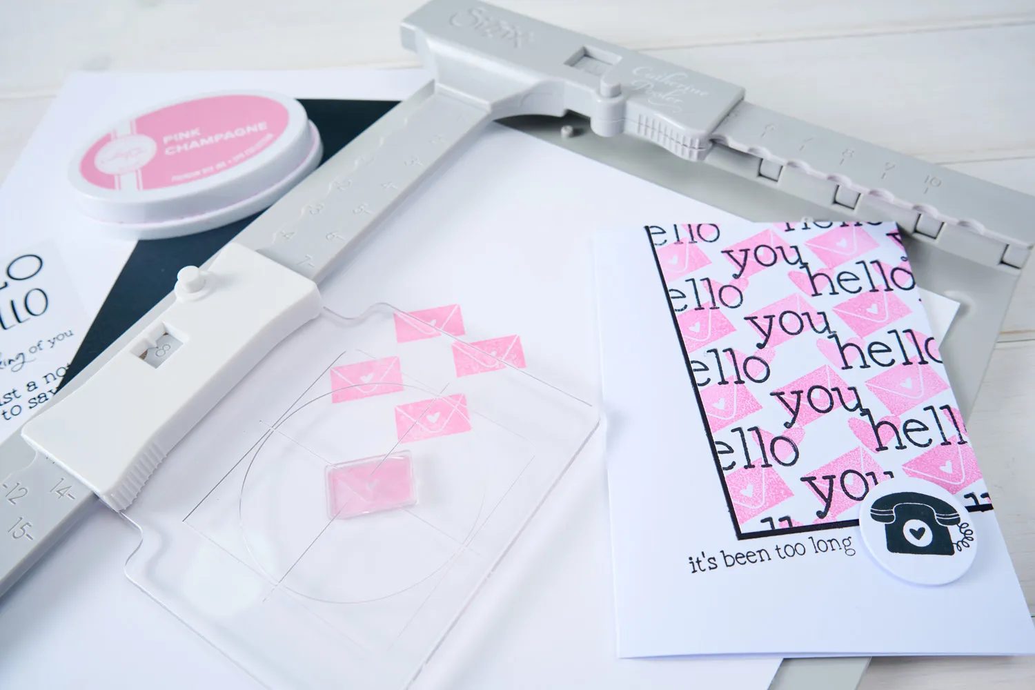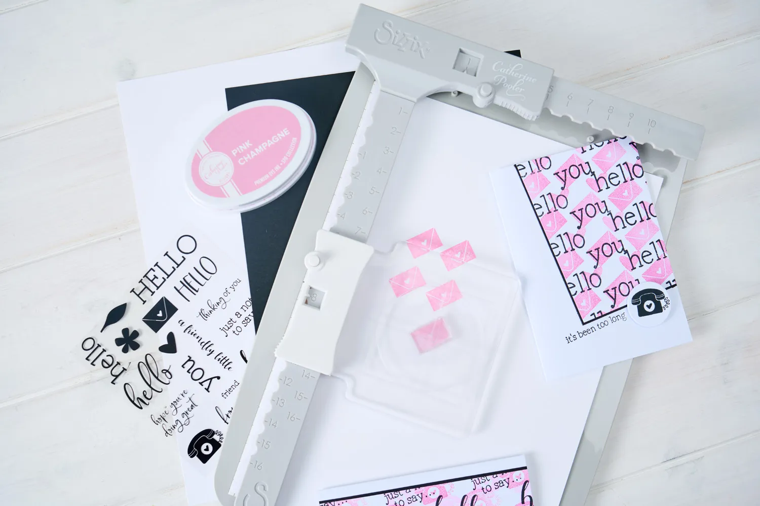 In StockThe Print & Pattern Hello Sentiments Clear Stamp Set by Catherine Pooler is an 18-piece collection designed for use with the Sizzix Stencil & Stamp Tool Accessory – Print & Pattern Tool (667098), making it easy to create repeat patterns and seamless stamped designs.