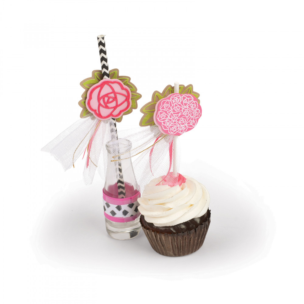 Sizzix Framelits Die & Stamp Set Cupcake Straw Toppers