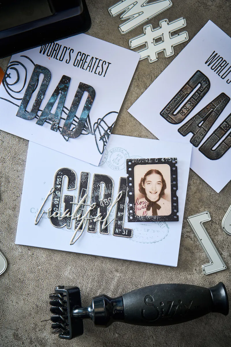 In StockDual-layered and 2" high, this classic Alphabet set by Tim Holtz makes every word a statement! Each of the 43 dies cuts an outline and an inner letter, to be used separately or together depending on the project. From innovative home decor pieces to bold birthday greetings, this classic Alphabet can do it all! Use this set with the Sizzix Adhesive Sheets (656802) for consistent and easy application. Thinlits dies produce clean, detailed cuts through cardstock, paper and velum, making them ideal for layering and embellishing makes all year round.
