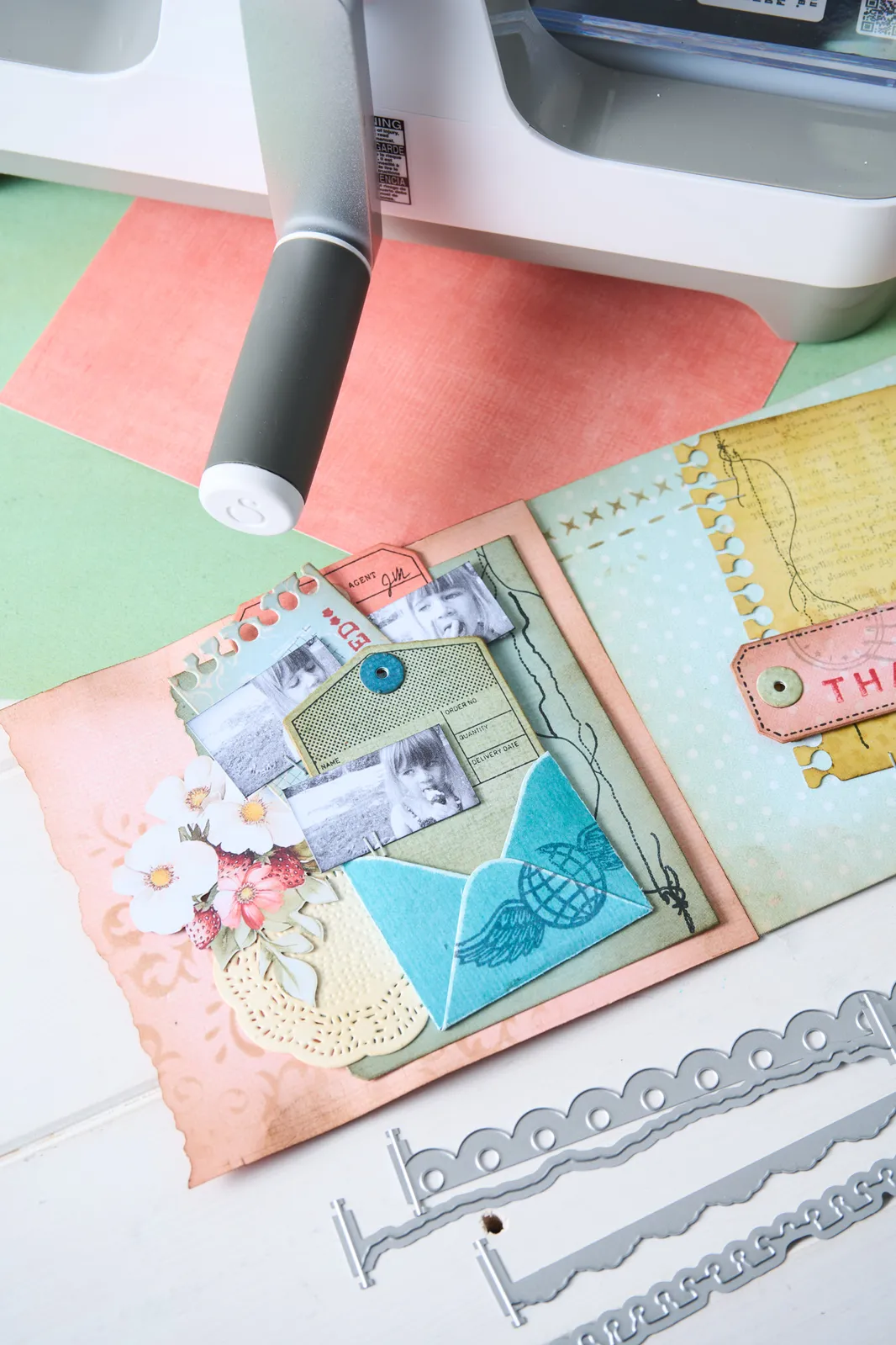 The Snap and Swap Journal Thinlits Die Set by 49 and Market is a wafer-thin die set designed for use with a Sizzix Big Shot die-cutting machine. This Snap and Swap die set is used to create handmade journals from cardstock, patterned paper, vellum, and other materials. The set includes interchangeable edge designs like scalloped, ripped, and lace, allowing you to mix and match elements that snap in and out of your die for complete personalization. This 16-piece set brings flexibility, personalization, and intricate detail to every DIY journal.