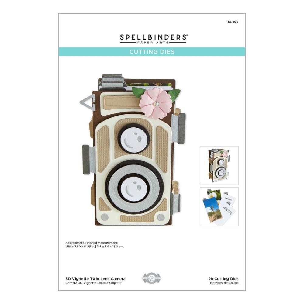 The 3D Vignette Twin Lens Camera Etched Dies are part of the 3D Vignettes Collection by Becca Feeken. When assembled, the set of 28 thin metal cutting dies makes a wonderful dimensional vintage camera. Inside there are four vertical inserts to add messages, pictures and more. WoW! Folds into an envelope to mail. A PDF instruction sheet is available to guide you through with assembly. The finished project measures 1.50 x 3.50 x 5.10 in./3.80 x 8.90 x 13.00 cm.