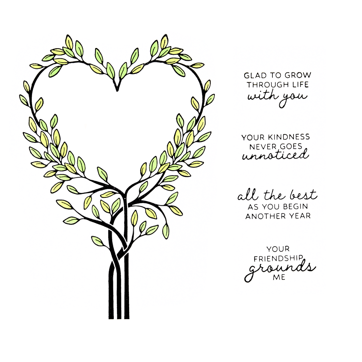 Flourish & Vine Press Plate & Die Set & Free Member Gift is the December 2025 release plate for the independent retailers' exclusive BetterPress Society. A sweet heart shaped vine is the focal point of this set, with four coordinating sentiments for the center. A registration template is included to ensure you get perfect placement for the sentiments, including 'Glad to Grow Through Life With You,' and 'Your Friendship Grounds Me.' A coordinating die cuts out the center of the heart to add more creative possibilities to this set. Try a shaker card, or add a peek-a-boo sentiment!