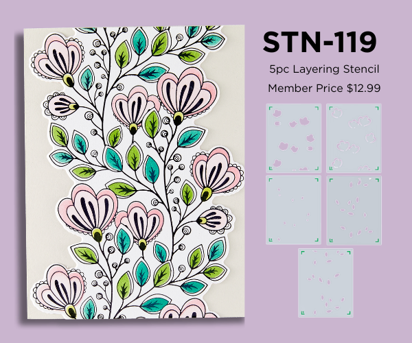 Friendship Grows Layered Stencil is the November 2025 add-on for the BetterPress Society, available exclusively to independent retailers. This set of five 4.75 x 6" stencils makes adding beautiful hues to the flowers and leaves simple and easy! With two different stencils for the leaves, gorgeous color and dimension is only a layer away!
