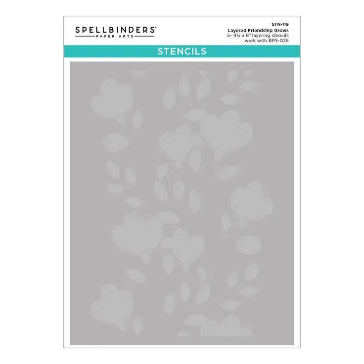 Pre-order - Released 30 November 2025Friendship Grows Layered Stencil is the November 2025 add-on for the BetterPress Society, available exclusively to independent retailers. This set of five 4.75 x 6" stencils makes adding beautiful hues to the flowers and leaves simple and easy! With two different stencils for the leaves, gorgeous color and dimension is only a layer away!