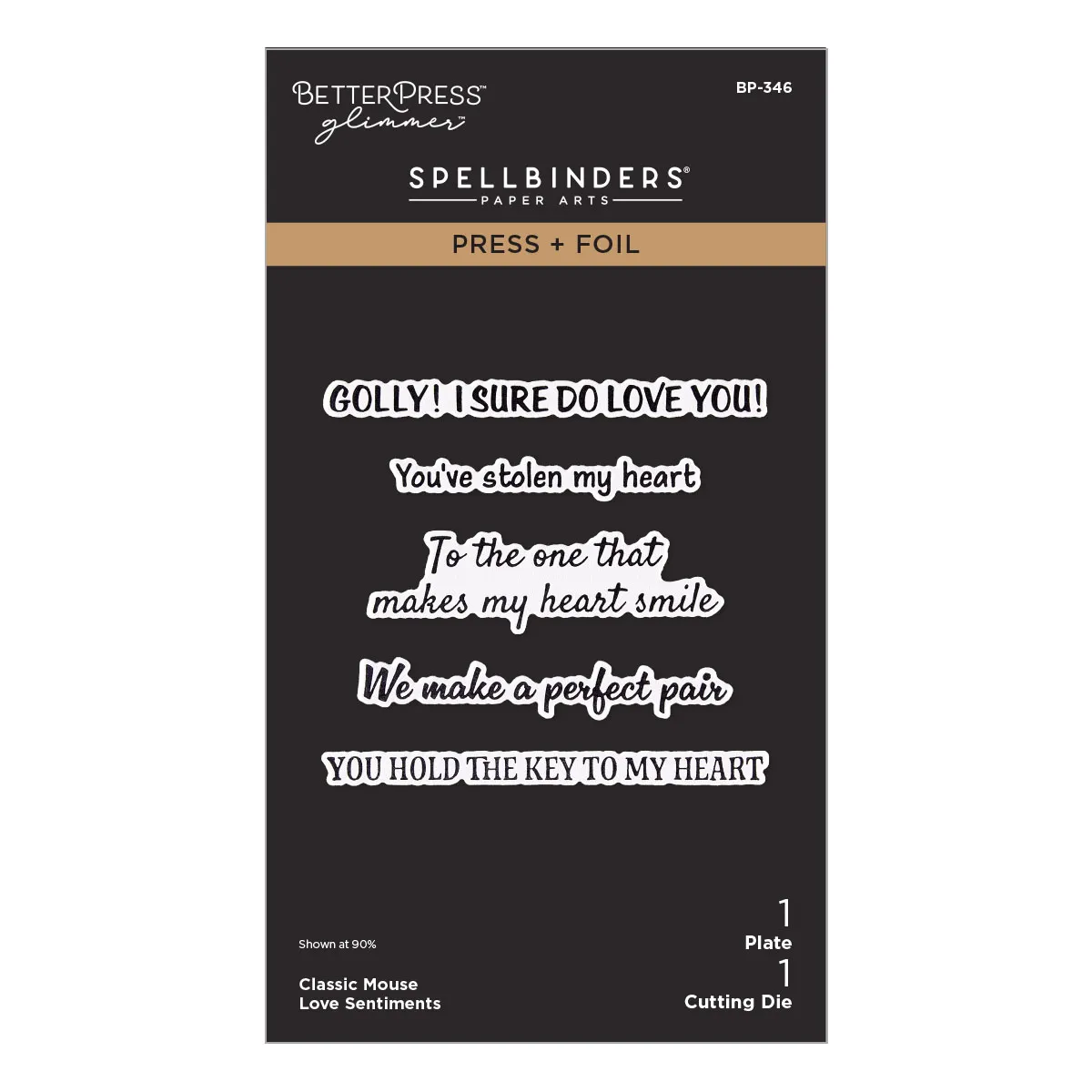 Spellbinders Classic Mouse Love Sentiments Press + Foil Plate & Die Set from the Classic Mouse Love Collection