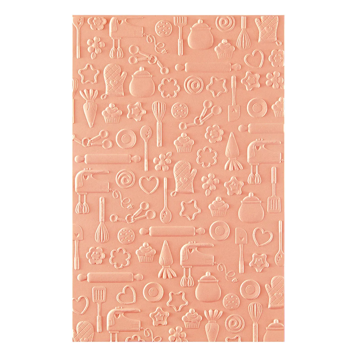 Confection Companions 3D Embossing Folder is a 5.50 x 8.50-inch embossing folder filled with an amazing backdrop of some of the designs taken from each of the die sets in the collection like cupcakes, whisks, cookie cutters, rolling pins and more! It makes a fabulous addition to mix and match with the other sets in this collection!