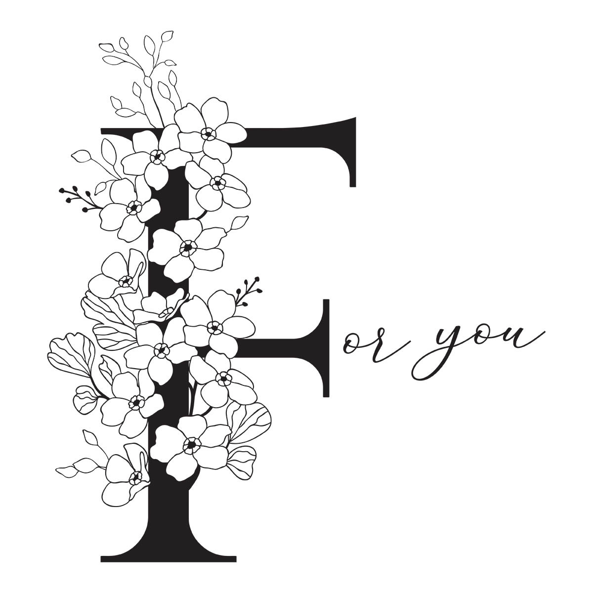 In StockFloral F and Sentiment Press Plate is part of the Every Occasion Floral Alphabet Collection and includes two press plates. The largest plate is a stunning contemporary uppercase F font accented with floral details. The second plate compliments the letter with a sentiment, (F)or you. Ink the plates with the BetterPress Ink to be pressed against the BetterPress Cotton Card Panel and Sheets for a crisp letterpress design.