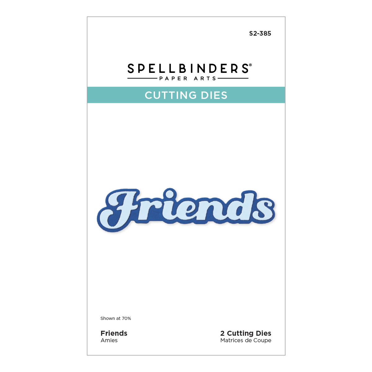 Friends Etched Dies are from the Storytelling by Spellbinders Collection and includes a set of two thin metal cutting dies surrounding the word, Friends. It cuts a big bold font with an outline to help highlight the word more.