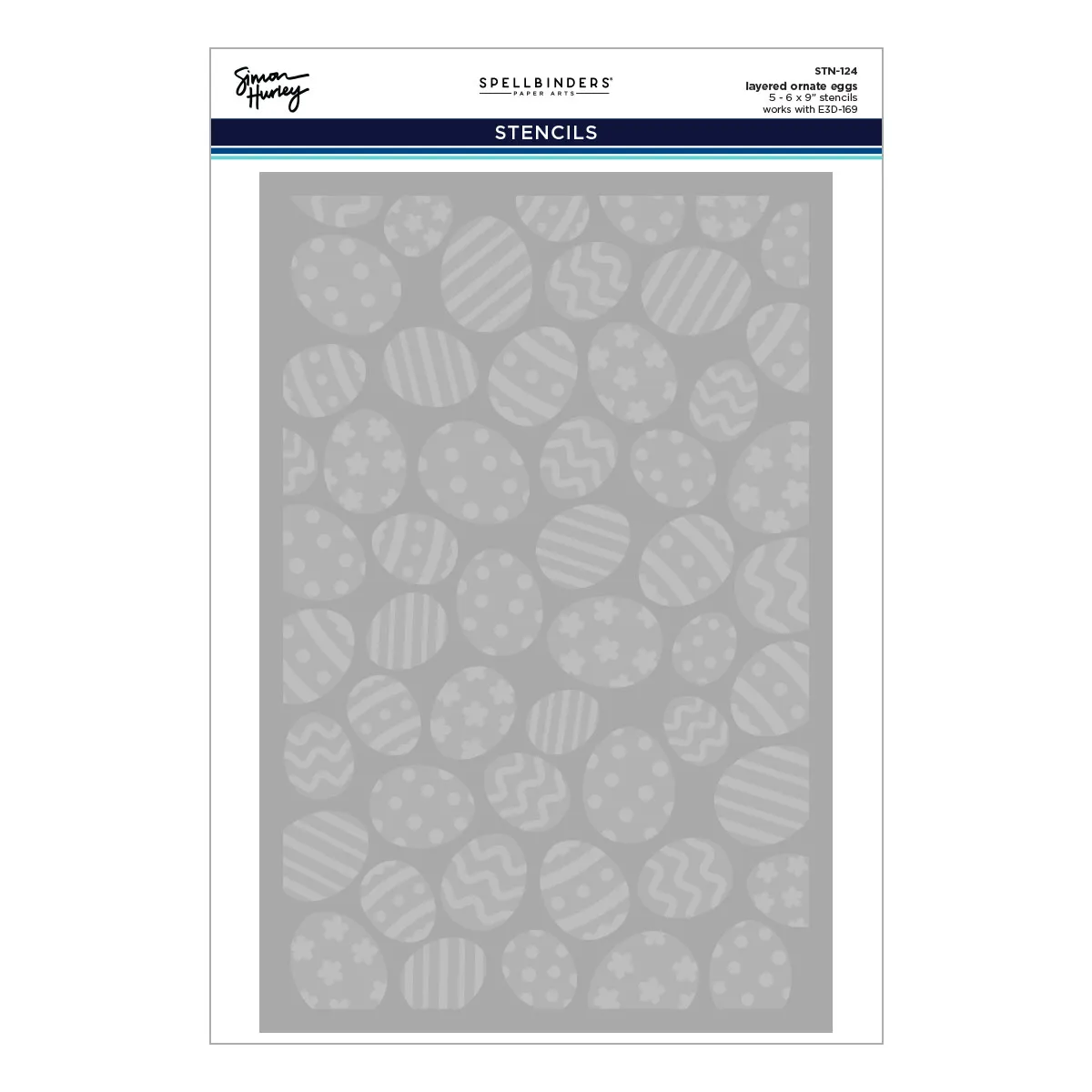 In StockLayered Ornate Eggs Stencil is part of the Happy Spring Collection by Simon Hurley and made of durable mylar stencil material. The five stencil sheets give a detailed decorated egg background for a one-layer look or use mediums like Simon?s paste for dimension. For an embossed texture, use E3D-169 Ornate Eggs 3D Embossing Folder or purchase as a bundle with the dies in the collection, BD-1050 Happy Spring I Want It All Bundle (both sold separately).