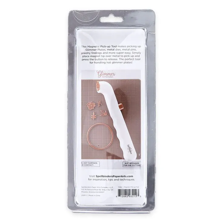 This Magnetic Pick-up Tool makes Picking up Glimmer Plates, metal dies, metal pins, jewelry findings and more super easy. Simply place magnetic tip over metal to pick up and press the button to release. The perfect tool for handling hot glimmer plates!