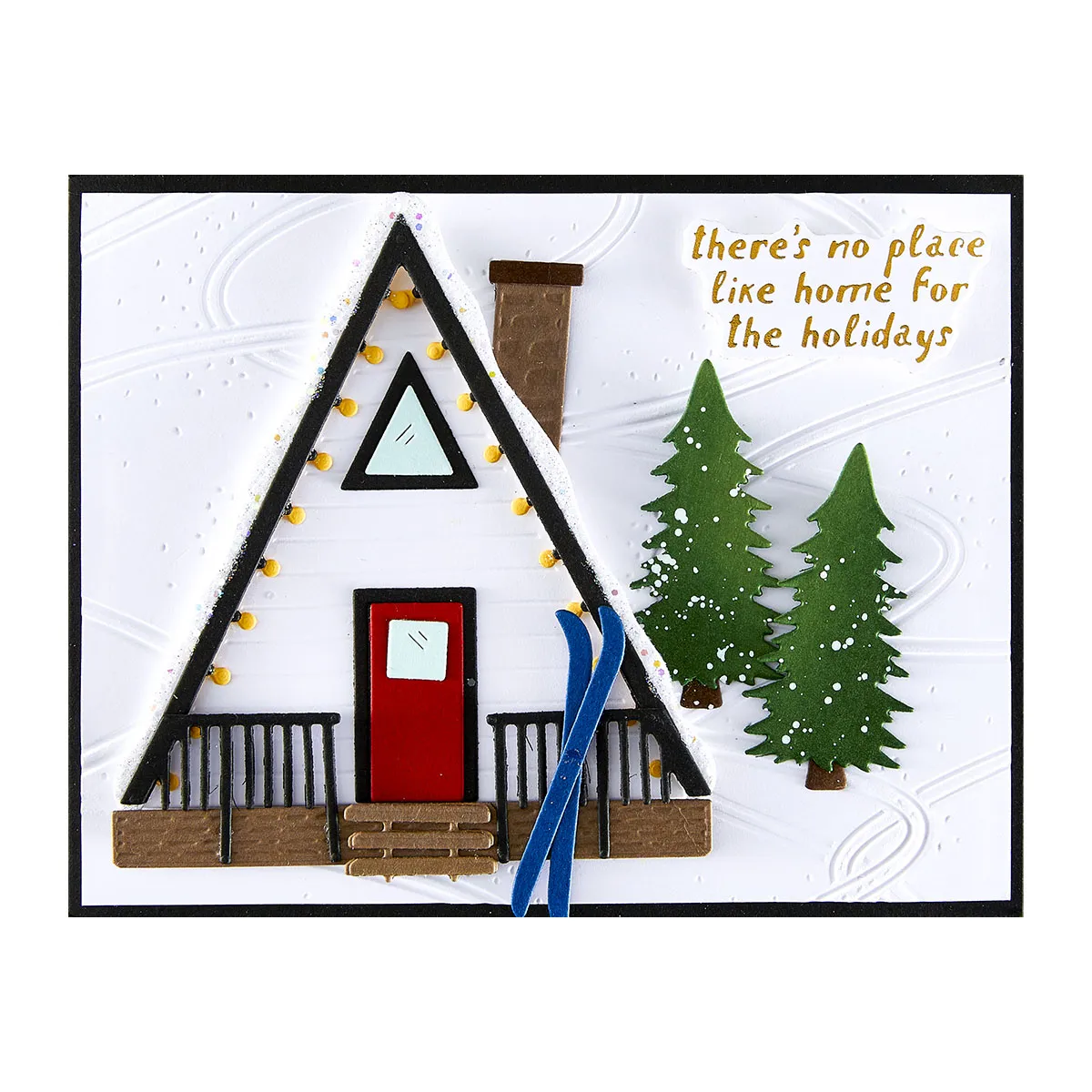 Ski-son's Greetings Sentiments BetterPress Plate & Die Set presses eight sentiments at once with one press plate, then die-cuts them all with the coordinating thin metal cutting die. A time saving set to get you started with eight sentiments. Use them individually or group them for a longer phrase. Works perfectly with the rest of this collection! Ink the plates with the BetterPress Ink to be pressed against the BetterPress Cotton Card Panel and Sheets for a crisp letterpress design.