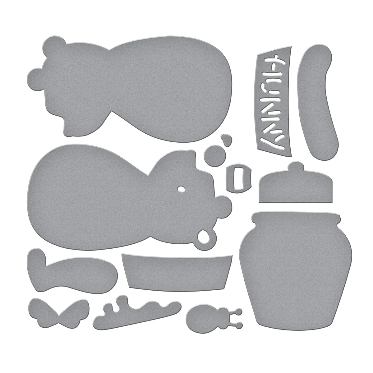 Stitched Classic Pooh Etched Dies are a set of 13 thin metal cutting dies that create sweet Pooh Bear with his favorite Hunny pot. It comes with a honeybee too! Make this adorable set even more warm and fuzzy by making them with FS-006 Classic Pooh Collection Felt Set, specially curated for friends from the 100 Acre Wood. Whether you create one silly old bear or a whole banner full, you'll love bringing this beloved friend to life in three dimensions. How can you resist?