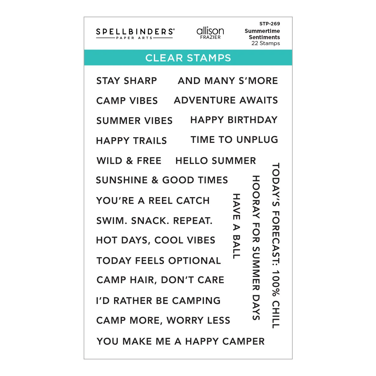 Spellbinders Summertime Sentiments Clear Stamp Set from the Summer Camp Collection by Allison Frazier