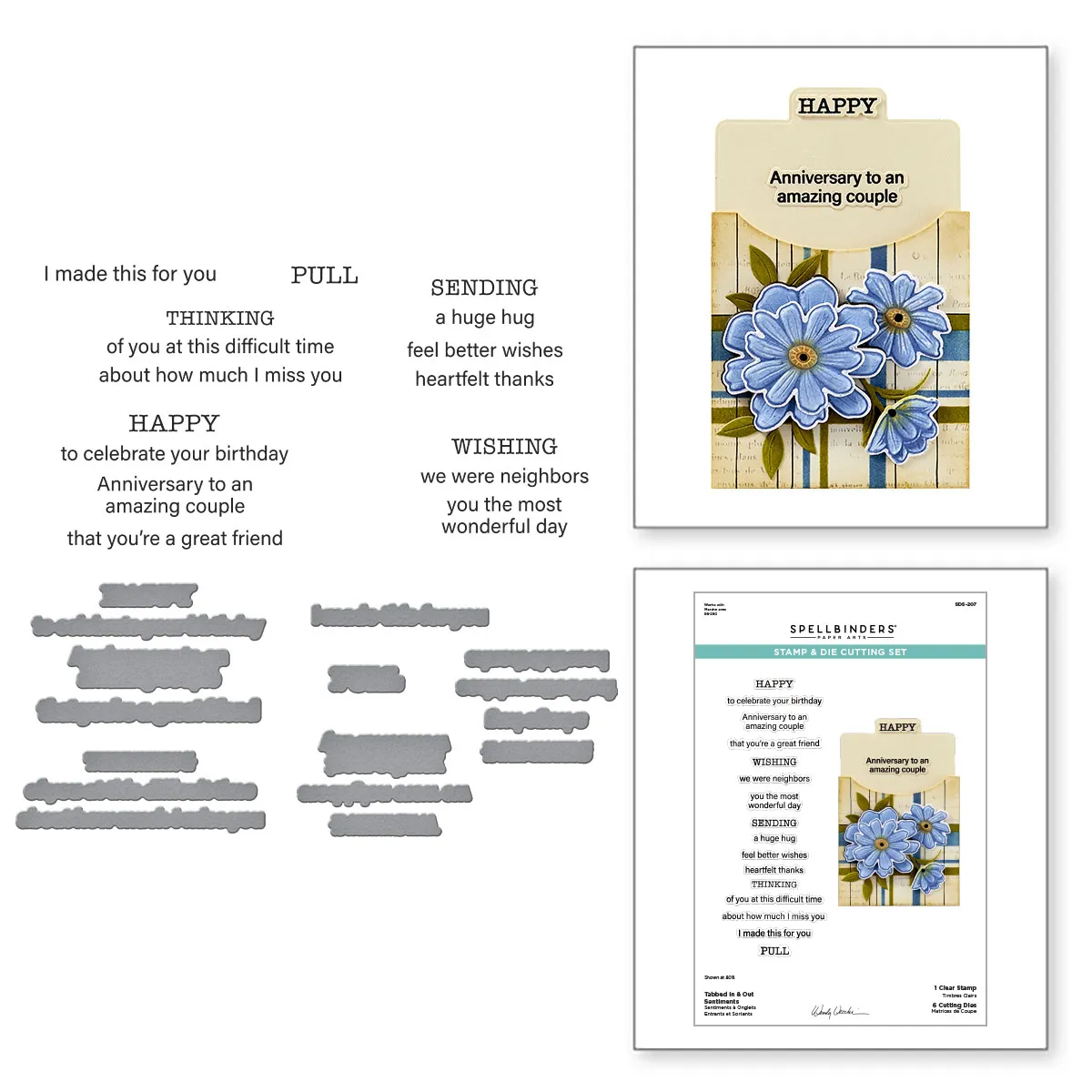 Spellbinders Tabbed In & Out Sentiments Clear Stamp & Die Set from the Tabbed Classics Collection by Wendy Vecchi