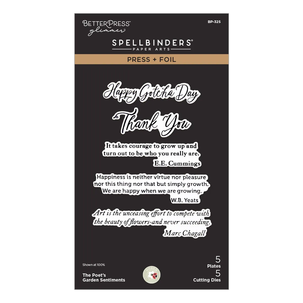 Spellbinders The Poet's Garden Sentiments Press + Foil Plate & Die Set from the Poet's Garden Collection by Susan Tierney-Cockburn