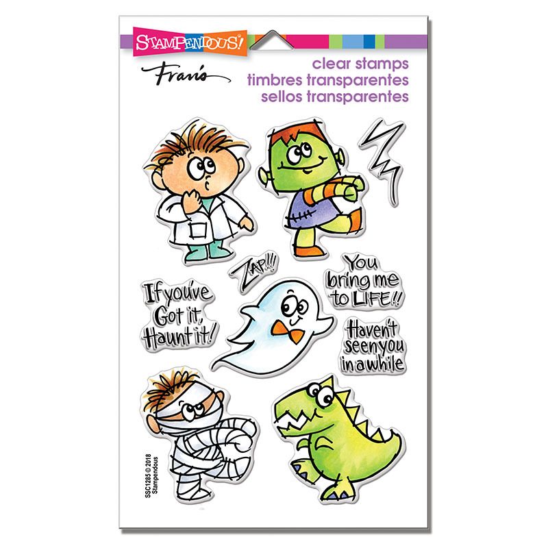 A mad scientist and his friends are accompanied by some fun greetings. Perfect for tags, treats, cards, invitations, scrapbook pages and more. 10 stamps. This Large 4" X 6" set of Perfectly Clear Stamps features premium photopolymer images from exclusive Fran Seiford artwork. Interactive images work together for dozens of fun looks. Use with acrylic handle sold separately. Made in the USA