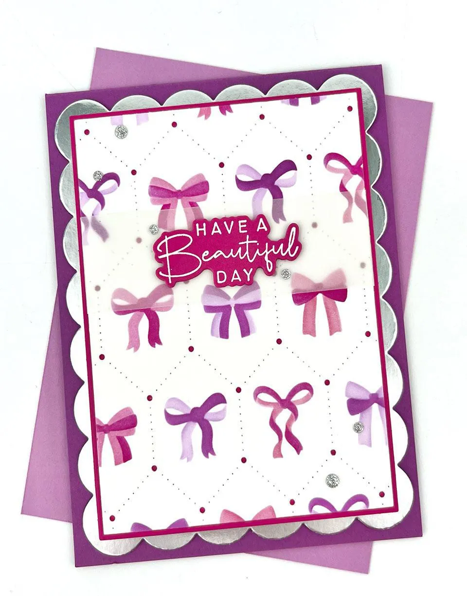 In StockAdd large-format, playful scalloped layers to your cards with the A7 Large Scallop Stacklets Die Set! This set includes five dies that create perfectly proportioned scalloped panels for beautiful layering and dimension. Sized to fit an A7 card base, this set of layering dies make it easy to add a polished, decorative edge to your card designs. Includes 5 individual dies, each slightly smaller than the next: Sizes include: 4 ? x 6 ? in. (largest), 4 x 6 in., 3 ¬ x 5 ¬ , in., 2 ? x 4 ? in., 2 ? x 3 ? in. (smallest). All stacklets come on a magnet backer for easy storage.