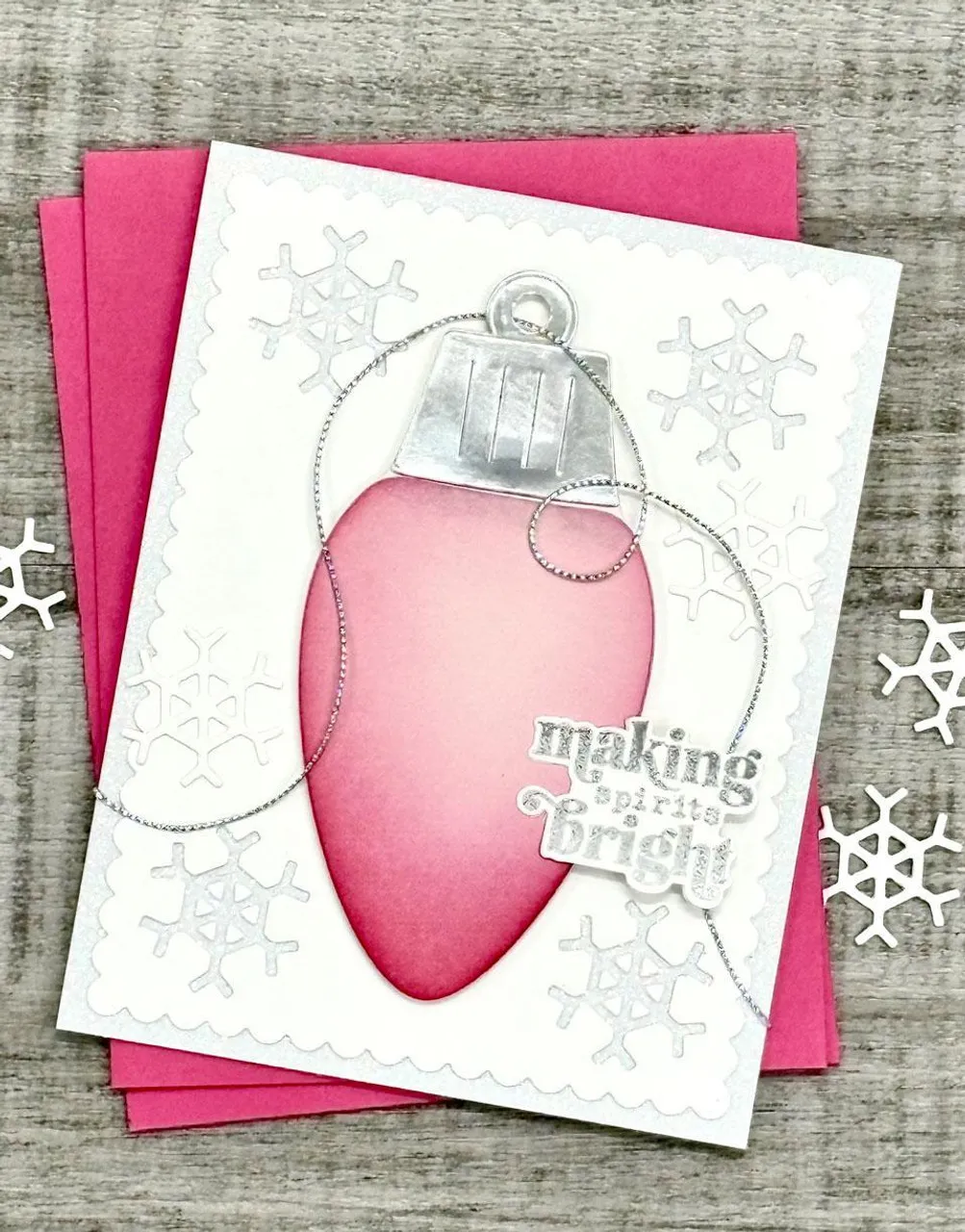 Brighten your handmade projects with the Let It Glow Garland Die Set! This set includes everything you need to create large, stitched lightbulbs that look just like classic holiday lights. Each bulb includes a front and back piece with stitching holes, making them perfect for crafting with felt or paper. Use a single bulb as a bold accent on a Christmas card or tag, string several together to create a cheerful handmade garland for your holiday décor, or create ornaments as holiday gifts for your friends and family, the possibilities are endless!