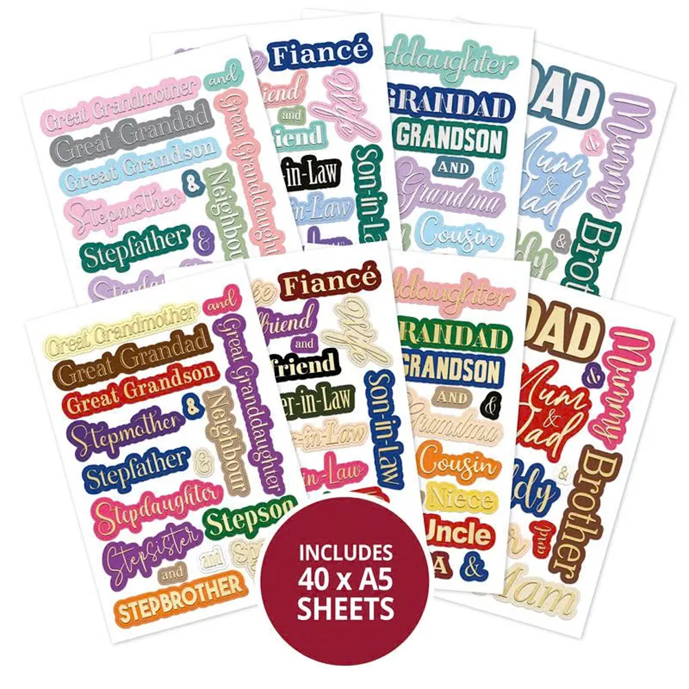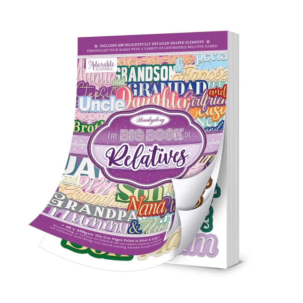 In StockPrepare to personalise your makes like never before with this bumper book of stunning relative names! This must-have A5 sized book is the perfect go-to in your crafting stash with intricately die-cut elements following the shape of the wording within, presenting a host of colourful foiled relative names and ampersands to help you celebrate all sorts of special moments for a variety of recipients.