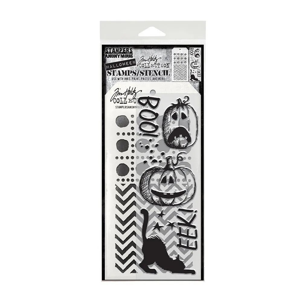 Tim Holtz Mixed Media Stamp & Stencil Set - Eek a Boo