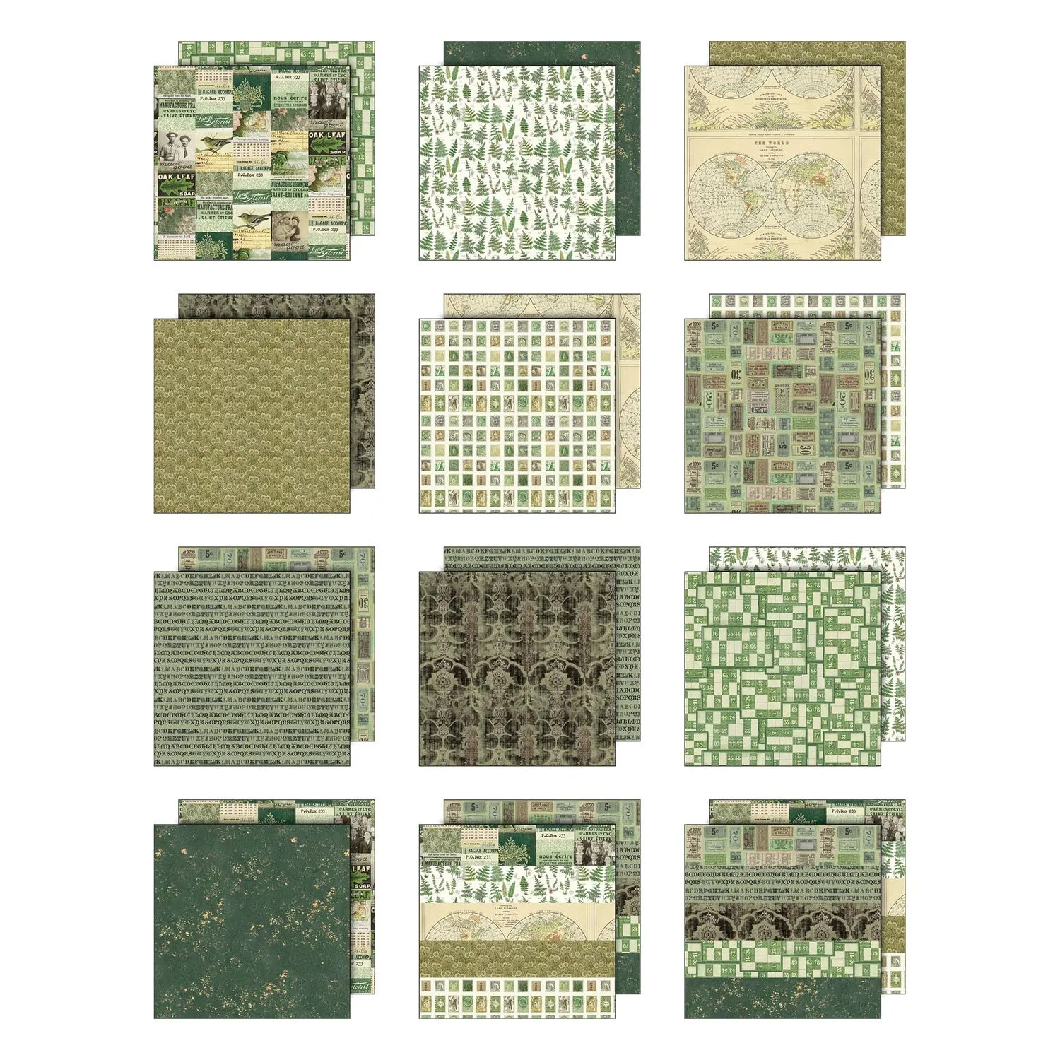Pre-order - Released 20 March 2026Tim Holtz idea-ology Green 8 x 8 Palette Paper Collection is earthy, organic, and rooted in nature-inspired vintage style. This curated collection explores mossy greens, soft sages, deep forest tones, and weathered olives. The 12 double-sided papers feature a thoughtful mix of botanical prints, maps, typography, ticket blocks, textures, and timeworn patterns, making them ideal for layered storytelling. Perfect for journaling, cardmaking, scrapbooking, and mixed-media projects, this green palette brings a grounded, natural richness to your creative work. Includes 12 double-sided sheets. Paper size: 8 x 8 inches