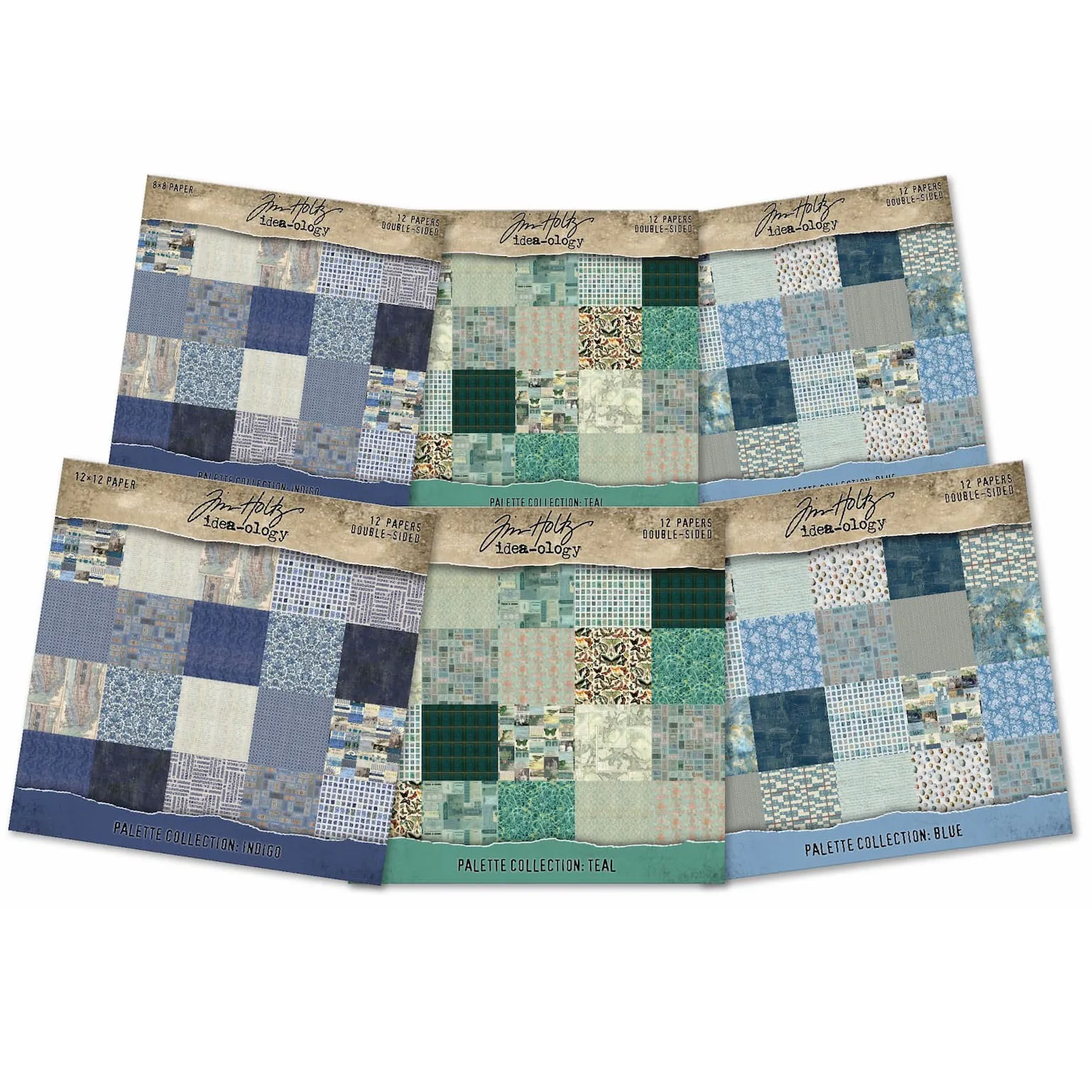This bundle contains all six paper pads released in May 2026. TEAL 12x12" and 8x8" Palette Paper Collection is cool, moody, and layered with vintage intrigue. This curated collection explores soft aquas, muted teals, blue-greens, and deep patina tones inspired by weathered metals and aged ephemera. The 12 double-sided papers feature a mix filled with botanical prints, classic checks, typography, marbled textures, and timeworn patterns. Perfect for layering, journaling, cardmaking, scrapbooking, and mixed-media projects, this teal palette brings depth, contrast, and a refined vintage feel to your creative work. It has an 80lb cover weight and has 12 pages per pack. BLUE 12x12" and 8x8" Palette Paper Collection is calm, classic, and rich with vintage depth. This curated collection explores soft sky blues, weathered denim, muted steel tones, and inky navy accents. The 12 double-sided papers feature a thoughtful mix of handwriting, maps, ticket blocks, soft florals, and distressed textures. Perfect for layering, journaling, cardmaking, scrapbooking, and mixed-media projects, this blue palette brings a timeless, soothing aesthetic to your creative work. It has an 80lb cover weight and 12 pages per pack. INDIGO 12x12" and 8x8" Palette Paper Collection is rich, moody, and steeped in classic vintage style. This curated collection explores deep indigo blues, soft denim tones, inky navies, and faded parchment hues. The 12 double-sided papers feature a mix filled of patterns of maps, handwriting, classic checks, ticket blocks, soft florals, and timeworn textures. Perfect for layering, journaling, cardmaking, scrapbooking, and mixed-media projects, this indigo palette adds depth, contrast, and timeless character to your creative work. It has an 80lb cover weight and has 12 pages per pack.