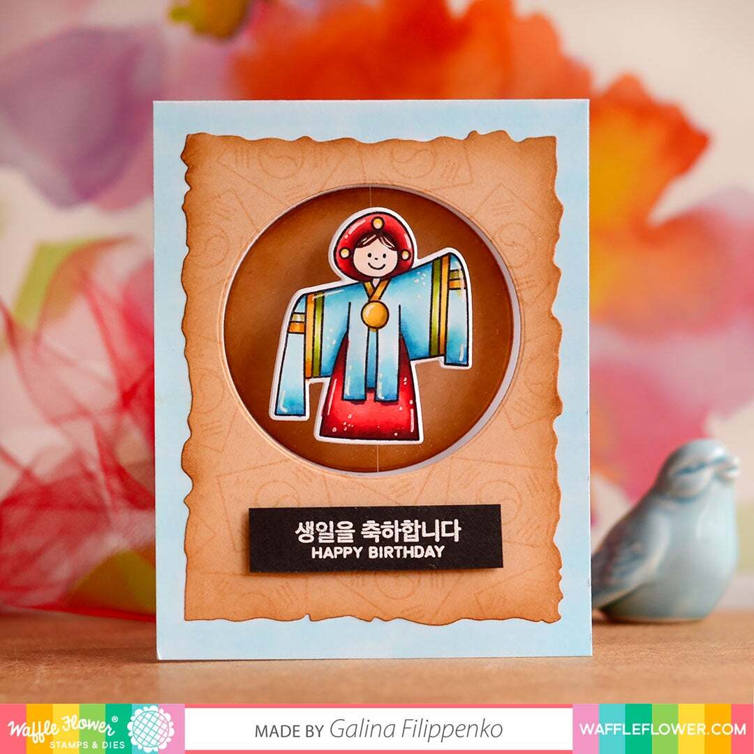The next stop in our international crafty travels with illustrator Kamo is Korea! The Annyeonghaseyo set is full of iconic Korean images and celebratory sentiments in Korean (Hangul) and English. Create charming scenes with characters in traditional clothing in Kamo’s signature cute style.