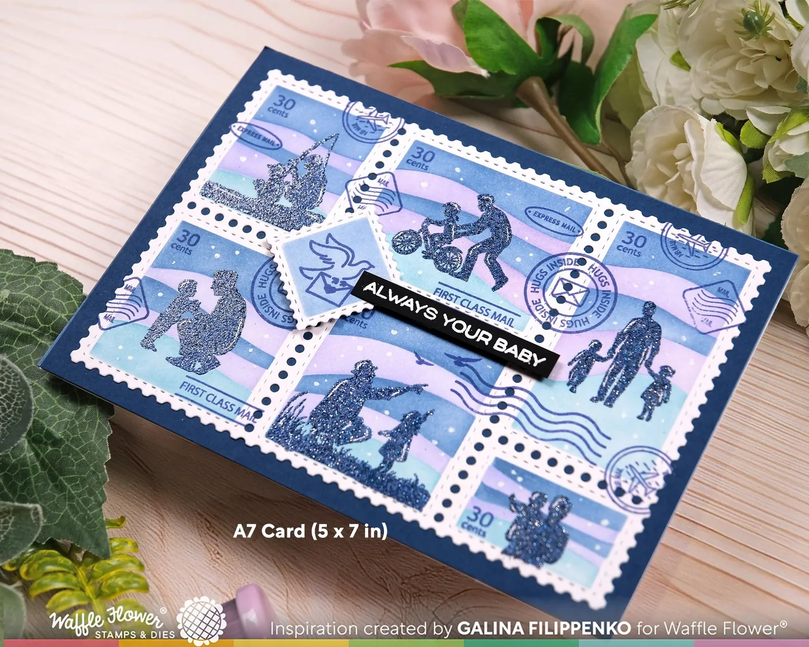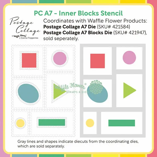Waffle Flower Postage Collage A7 Inner Blocks Stencil