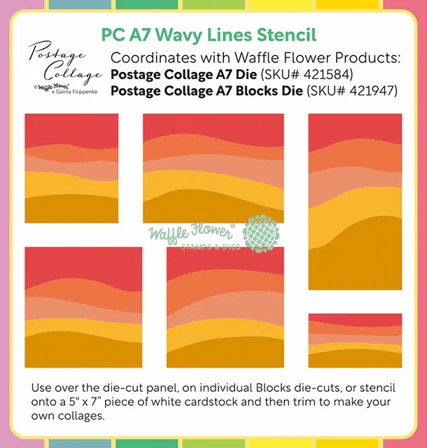 Waffle Flower Postage Collage A7 Wavy Lines Stencil