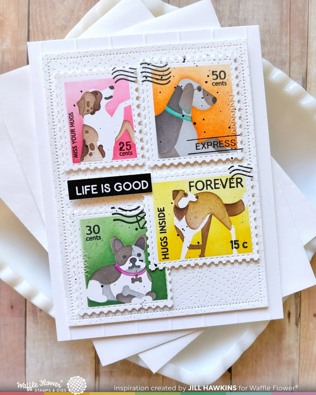 Waffle Flower Postage Collage Woof Stencil