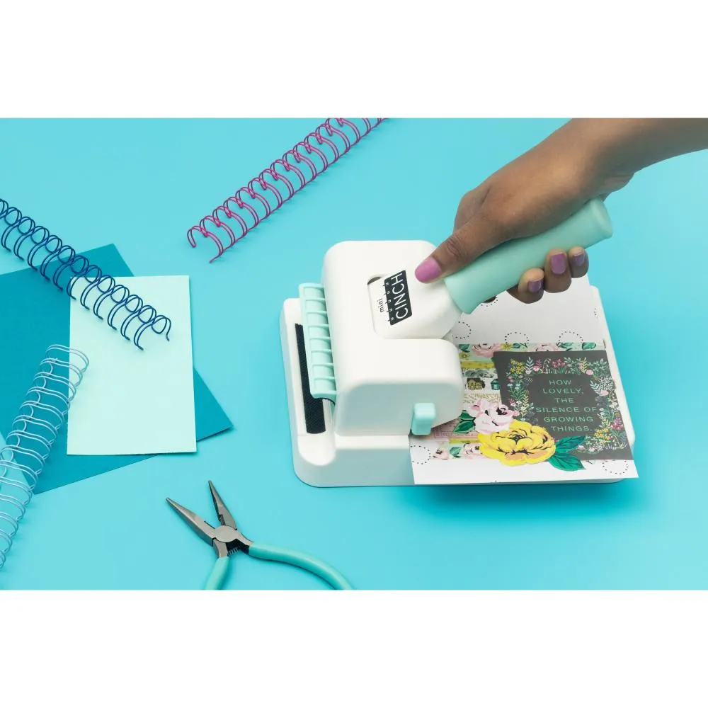Compact design lets you punch and bind projects up to 12 inches tall. Convenient centering measurements. Designed to work with the best selling 5/8 inch wires. The Cinch Book Binding Machine by We R Memory Keepers makes booking binding quick, easy and affordable. And now the Cinch comes in a new adorable mini size! It is the best binding tool on the market for home, school and office projects. Punch perfect holes with customizable hole spacing on any size project. The Mini Cinch is great for making mini albums, recipe books, customized journals and planners, presentations and more. This package includes one Mini Cinch book binding machine.